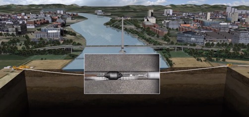 Método para instalación de tuberías de acero al carbón o de polietileno de Φ2” hasta Φ 80” con longitudes hasta de 2000m, dependiendo de las condiciones del sitio. Se utiliza principalmente para la ejecución de cruces subfluviales, de canales, bajo autopistas y pistas de aterrizaje.